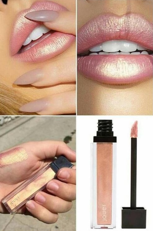 Jouer no es una marca de labiales tan conocida, sin embargo sus tonos de nombres y colores son bastante originales, cualquiera pensaría que los labios en tono tornasol se vería raro, pero esta marca diseñó un gloss tornasol en tono rose gold realmente hermoso.