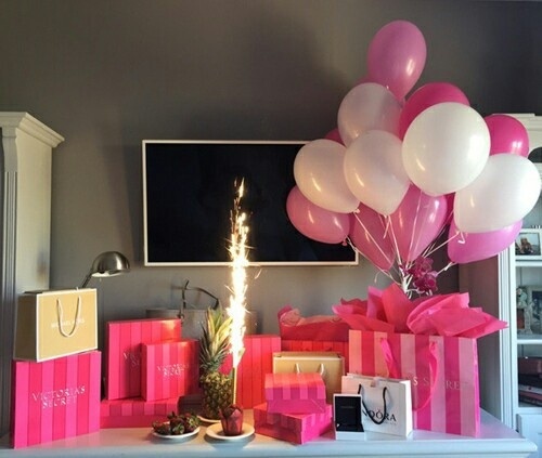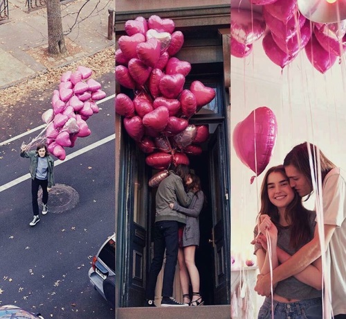 Imagina verlo llegar así con su cara de enamorado y un ramo de globos rosas en forma de corazón.