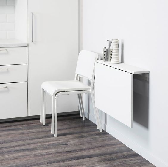 Hoy en día hay muchísimas tiendas dedicadas al hogar en donde puedes conseguir mesitas plegables a la pared. En caso de que no encuentres, siempre es buena opción buscar en tiendas online tipo ‘etsy’.
