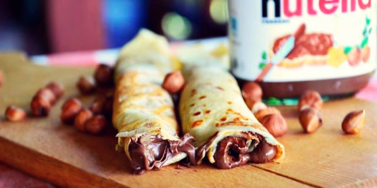 Mantequilla de maní, nutella, fresas y ralladura de naranja.