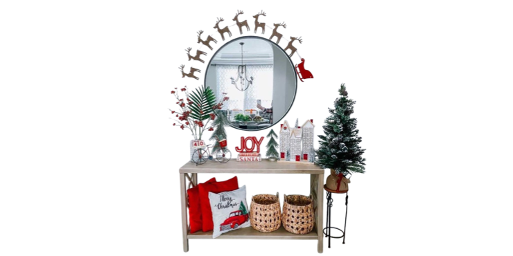 Elige un lugar especial en tu casa para convertirlo en tu rincón navideño. Usa una mesita o estante y decóralo con tus recuerdos favoritos: fotos de Navidades pasadas, adornos hechos por tus hijos o incluso una carta para Santa.