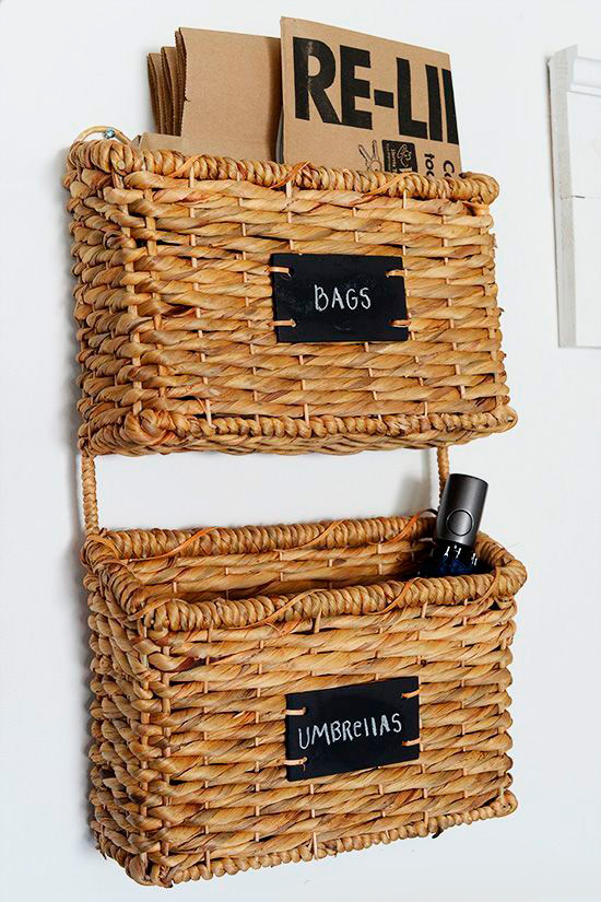 Las canastas con poca profundidad son ideales para colgar en la pared. Por ejemplo para colocar cartas, las llaves y cosas que necesitas guardar en cuanto entras a la casa.