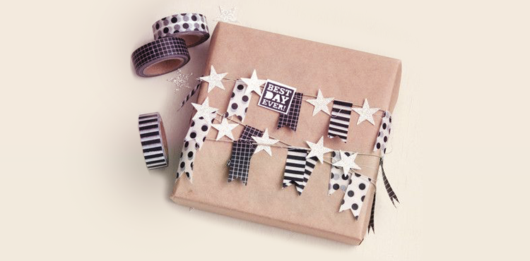 Festeja en blanco y negro con este diseño. La cinta washi la encuentras en papeleras tipo Office Depot o Office Max.
