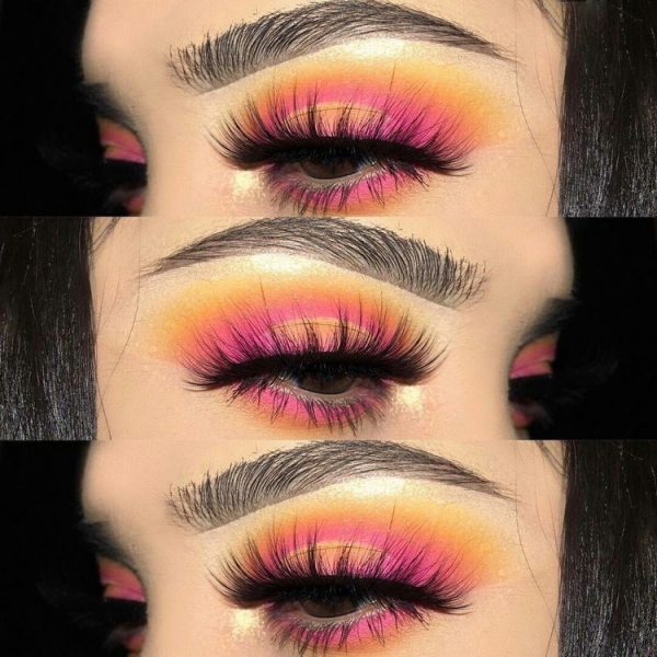 Un cut crease con colores del atardecer se te verá increíble. Obviamente porque tus ojos son su cielo ¡Dude! Esa es una buena respuesta si alguna chica envidiosa te pregunta ¿por qué te maquillas tanto?