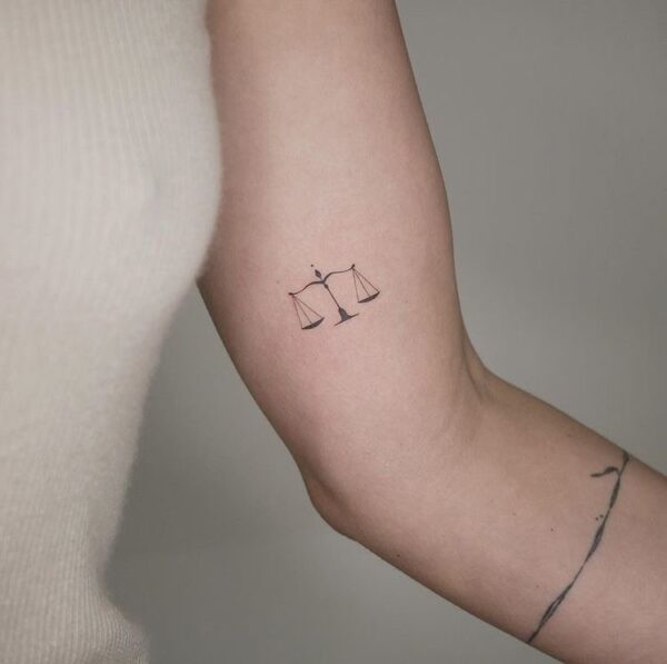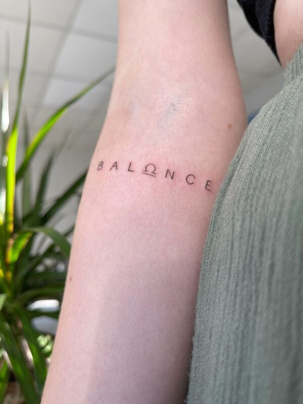 Sencillo, moderno y directo. Perfecto para quienes saben que el derecho no solo está en los tribunales, sino en cada decisión. Tatuado en el antebrazo, es casi una afirmación diaria: mantenerte en equilibrio incluso cuando el caos te dicta sentencia.