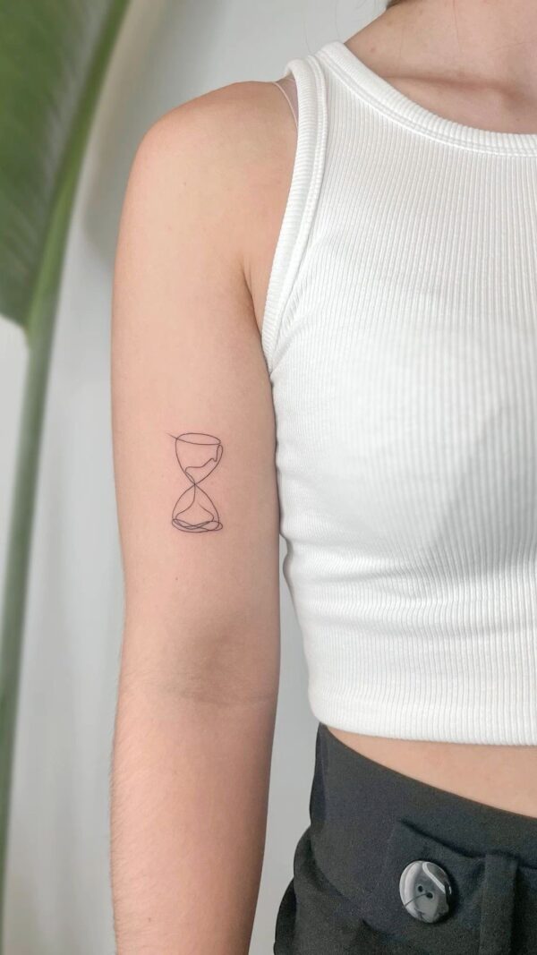 Minimalista, limpio y con un reloj de arena en el centro que lo dice todo. La justicia, el tiempo y la calma no se apresuran. En el brazo representa madurez emocional: saber que no todo se gana con impulso, sino con ritmo.