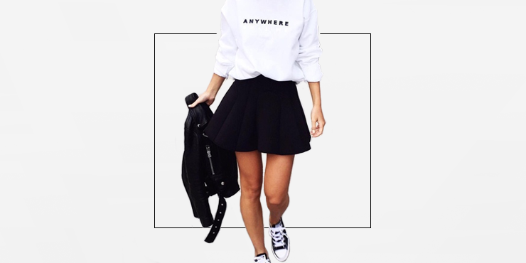 Para las chicas más indie, pueden hacer una combinación de negro con blanco como la de esta chica. El punto extra irá si amarras una playera de leñador a tu cintura. Esta también te ayudará como suéter si es que el clima anda muy voluble en ese día.