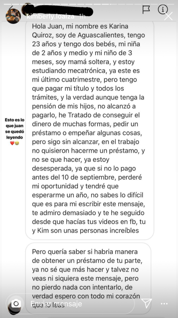 Resulta que Juan estaba leyendo el mensaje de una fan que le pedía dinero, y esta es la historia…
