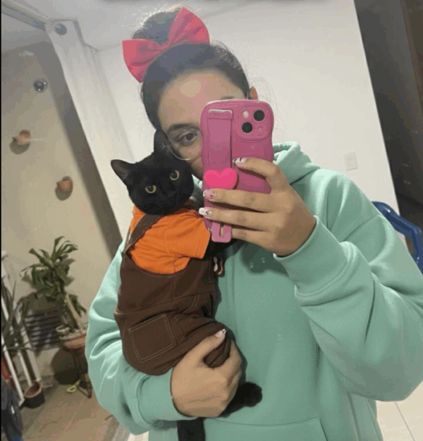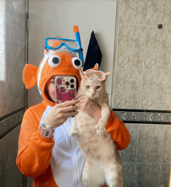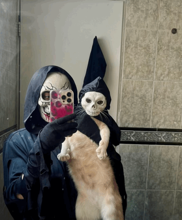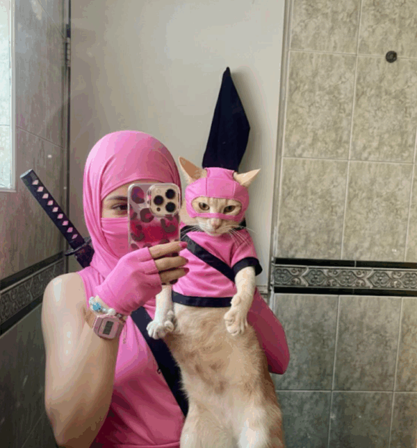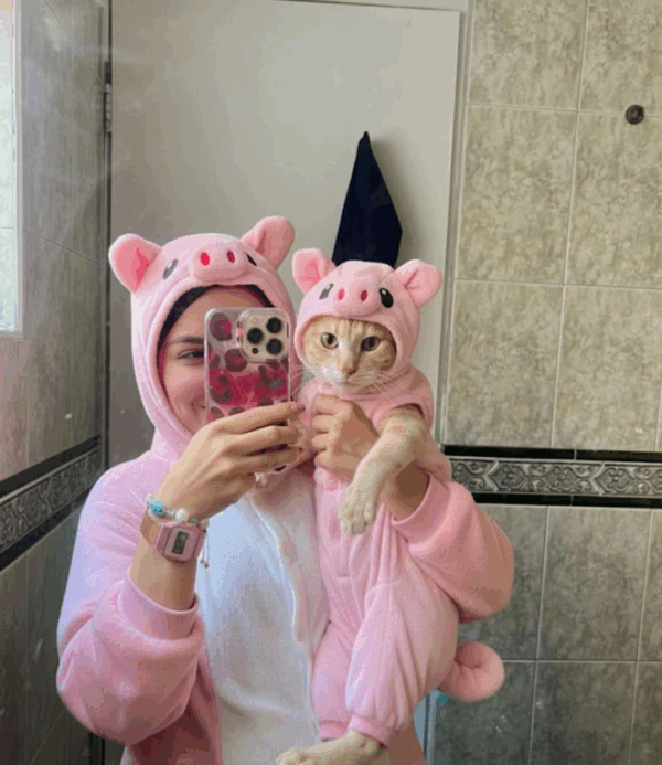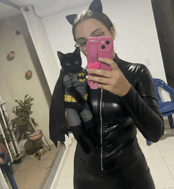 Tú pones la actitud, tu gato pone la cara de “otra vez con tus cosas”, y juntos se vuelven la dupla más icónica del año.