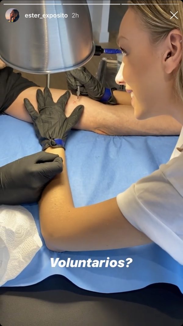 Pero esa no fue la mayor sorpresa, sino que ella misma le hizo un pequeño tatuaje en forma de ‘x’, a su tatuador. No sabemos si Ester quiera aprender este oficio, o si su tatuador simplemente es muy fan de Ester y quería un recuerdo para toda la vida.
