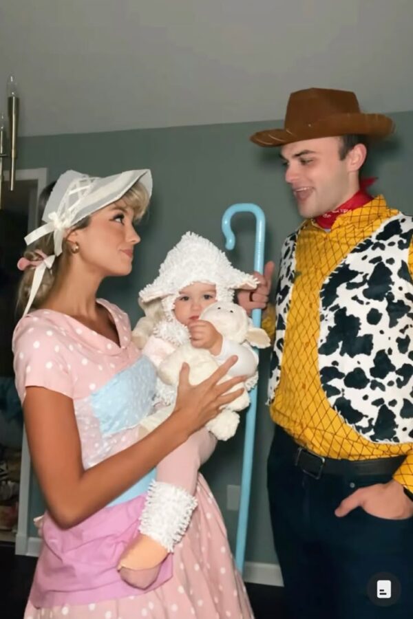 Bo Peep, Woody y la ovejita versión bebé. Literal Pixar estaría orgulloso de este casting familiar.