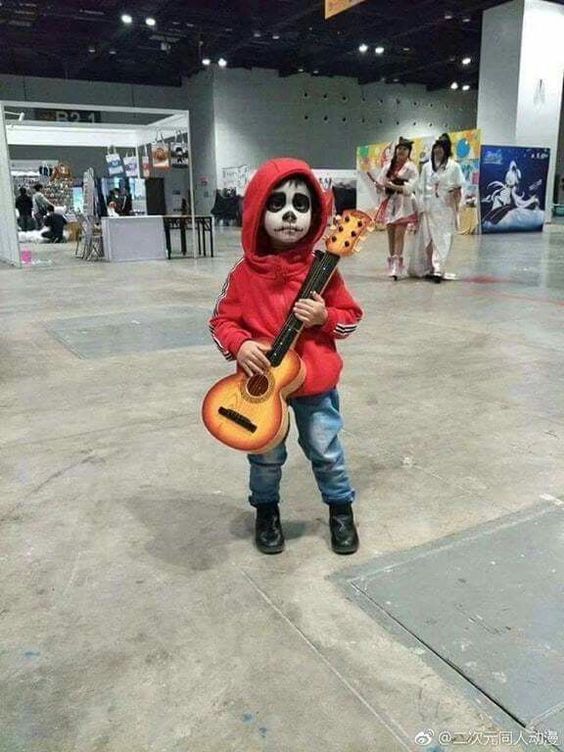 Si quieres algo muy Día de Muertos, este disfraz es un 10. Tu hijo con guitarra y pintado de calaca: directo para romperla en el festival de la escuela.