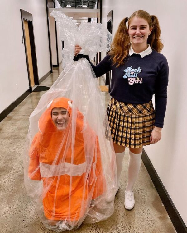 La pesadilla de todos los peces: Nemo en bolsa de plástico y la niña de brackets. Nivel cosplay PRO.