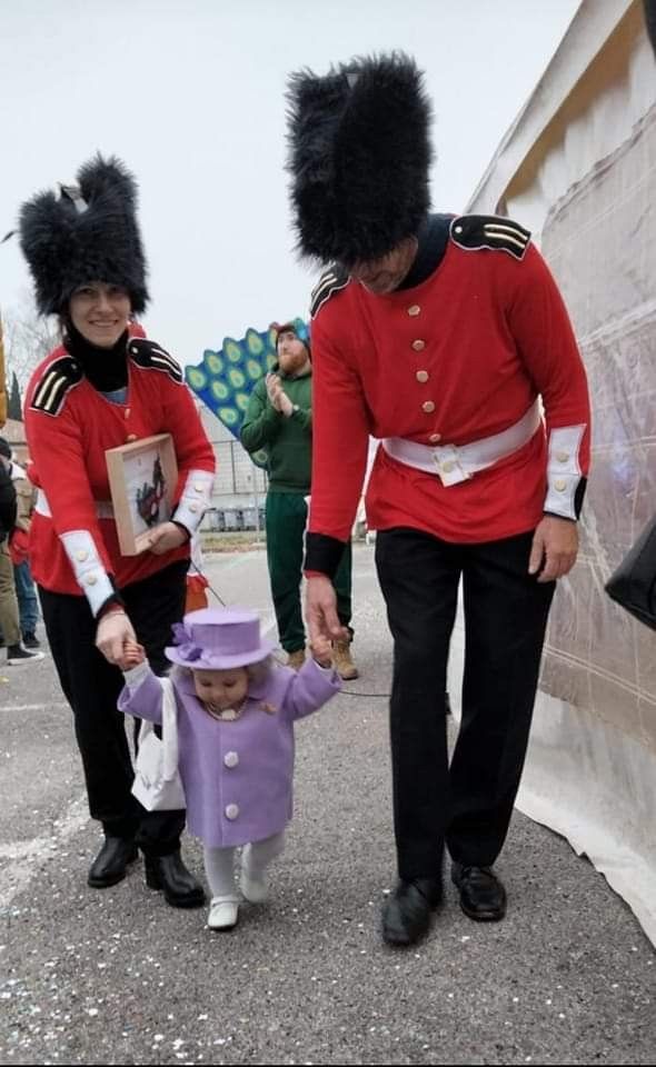 Una de las ideas más tiernas: papás de guardias británicos y la bebé como la mismísima reina. Londres, tiembla.
