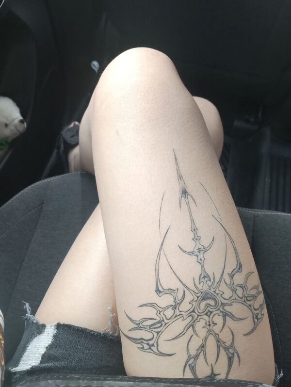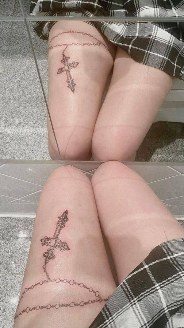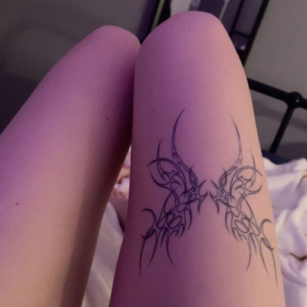 Un tatuaje que grita elegancia con toques de peligro. Se ve divino con faldas o shorts Chic con alma rebelde.