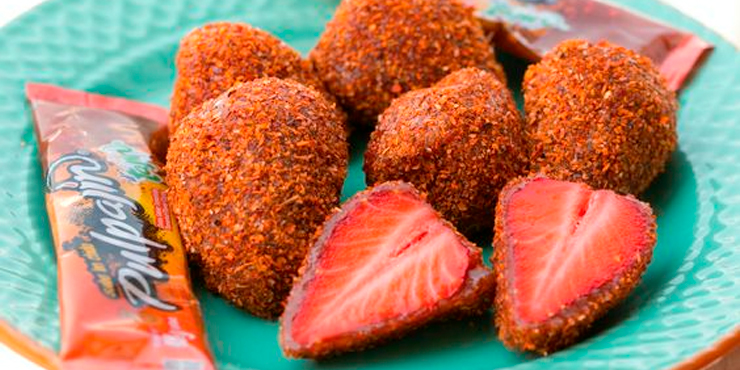 Congela las fresas, pásalas por chamoy líquido y luego empanízalas con chilito en polvo. Quedan como las gomitas picafresa.