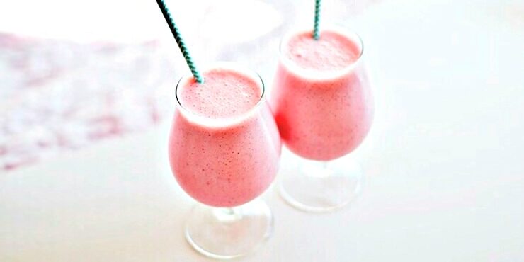 Mezcla todos los ingredientes en la licuadora por varios segundos. Coloca hielo en una copa y sirve.