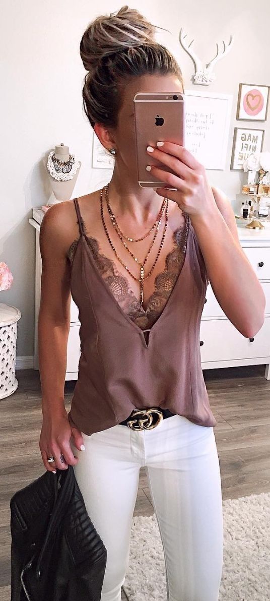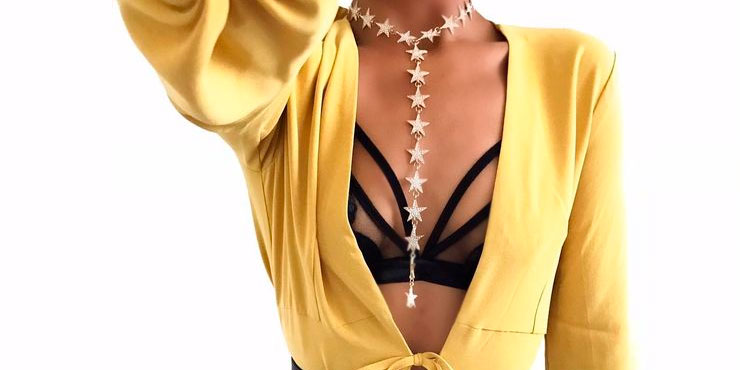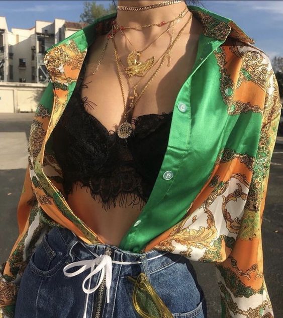 Si todas tus blusas son súper cerradas y sientes que tus collares simplemente no van. Busca una que tenga botones, ponte una blusa de tirantes debajo o un bralette y listo, añade todos los collares que tu cuello sea capaz de soportar.