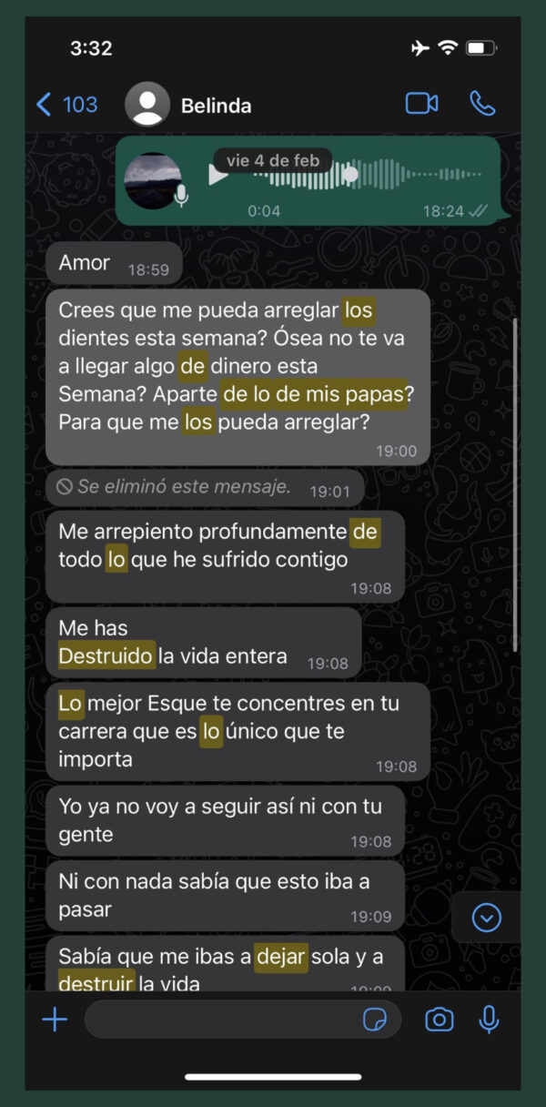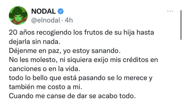 Bueno, pues Belinda no hizo caso y Nodal cumplió. Resulta que compartió la impresión de pantalla de un mensaje en donde claramente Belinda le exige dinero, y además lo culpa de arruinarle la vida; o sea, el chantaje emocional a todo lo que da.