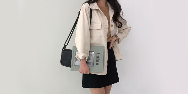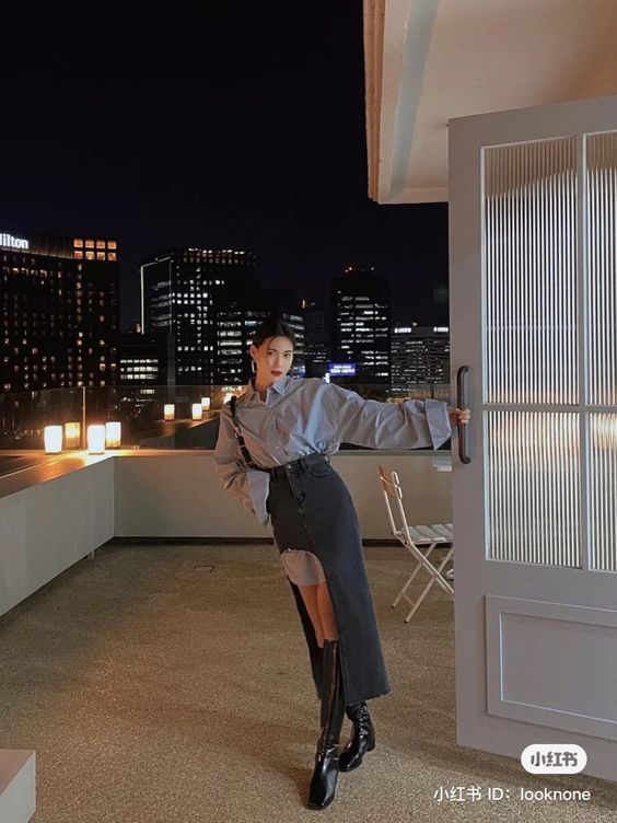 Con camisa mega larga para que sobresalga de la falda con mega abertura.