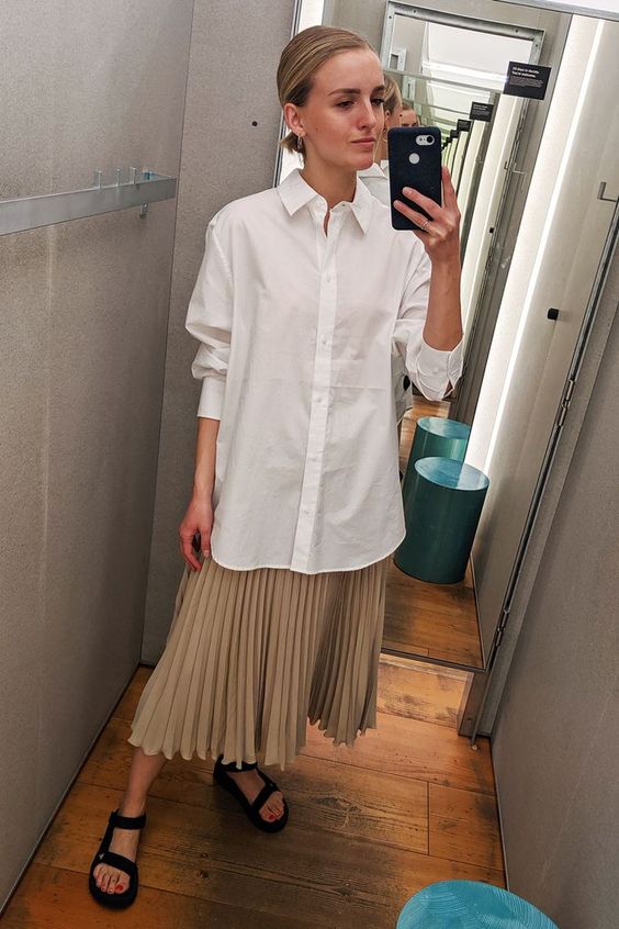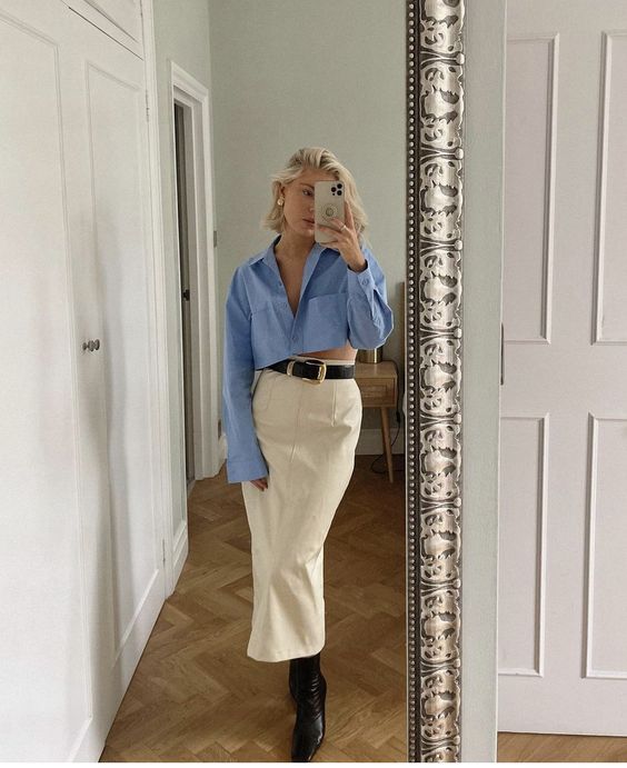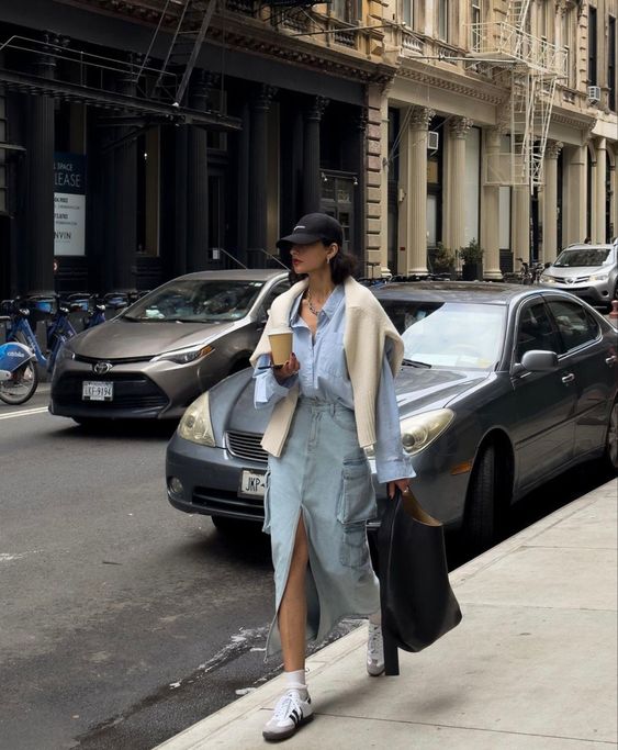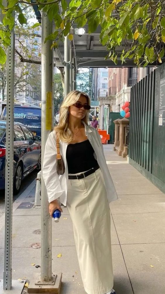 El look más lindo y que más estará en tendencia esta primavera/verano, sin duda serán las faldas de mezclilla (o de cualquier otra tela) largas con camisa blanca; y en su mayoría con sneakers, pero también se puede con ballet flats, zapatos Mary Jane o taconcitos. Y aunque parezca que no puedes crear demasiadas combinaciones, ¡claro que se puede! y se puede bien.