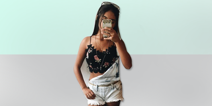Overal sólo sujetado de un lado y por debajo una ombliguera, crop top o bralette.