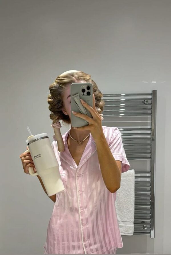 Hazte una trenza flojita o un chongo con scrunchie de satén. Así despiertas con ondas suaves, sin frizz y sin parecer leona electrocutada.
