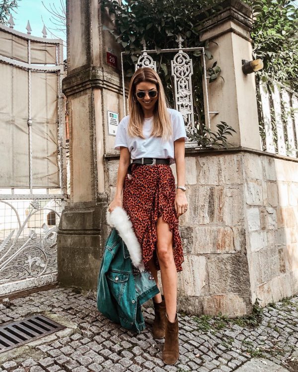 Una midi falda casual y trillada se convertirá en tu mejor arma para esos looks vintage que tanto te gustan. Sólo usa esa polera, botines y cinto de tus días normales, que la falda se encargará del resto.
