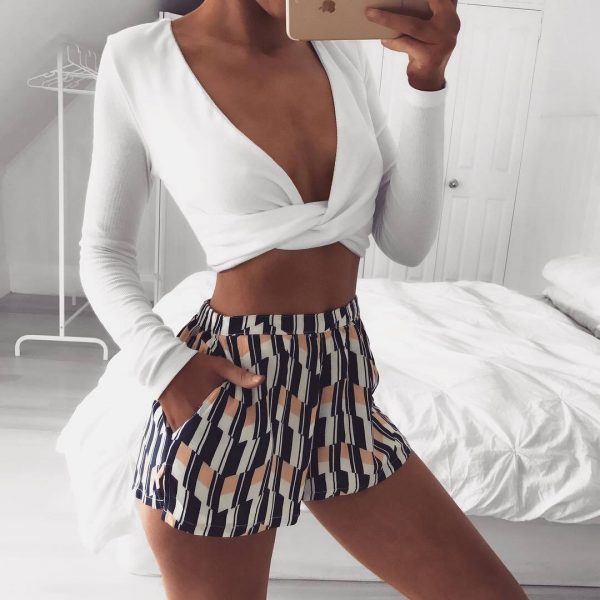 Los shorts formales de tiro alto se verán por todas partes, no te quedes atrás y consigue uno ¡Pero ojo! Intenta que sea de más de tres colores y que el diseño del estampado sea diferente al resto.