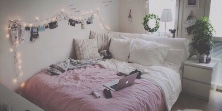 Coloca luces alrededor de tu cama, elige una pared. También recuerda que menos es más, trata de no tener demasiadas cosas por todos lados.