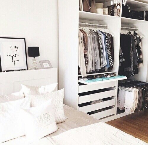 Closet sin puertas. No forzosamente necesitas las puertas para que tu habitación se vea bien. Eso sí, dale una buena pintada y mantenlo siempre en orden para que se vea increíble y entone bien en toda la habitación.