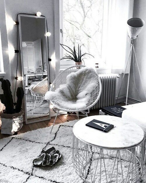 Espejo recargado en la pared. Además de verse chic, te ayudará a tomarte mejores selfies.