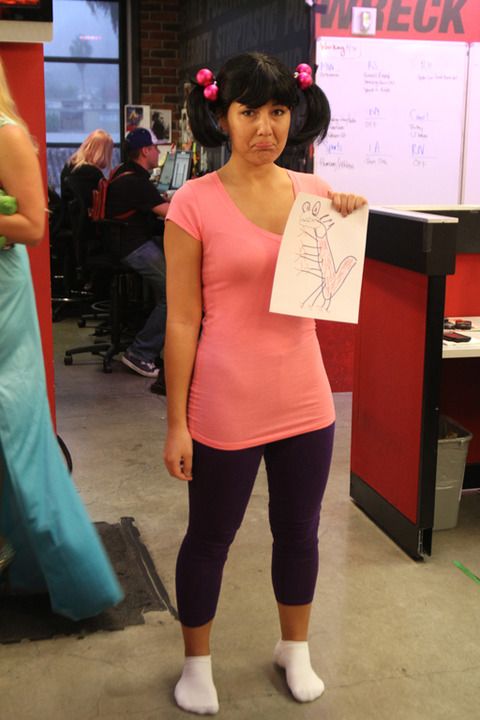 Haz un garabato en una hoja de papel. Ponte unos leggings, una playera rosa y hazte dos colitas. Una Boo casi instantánea.