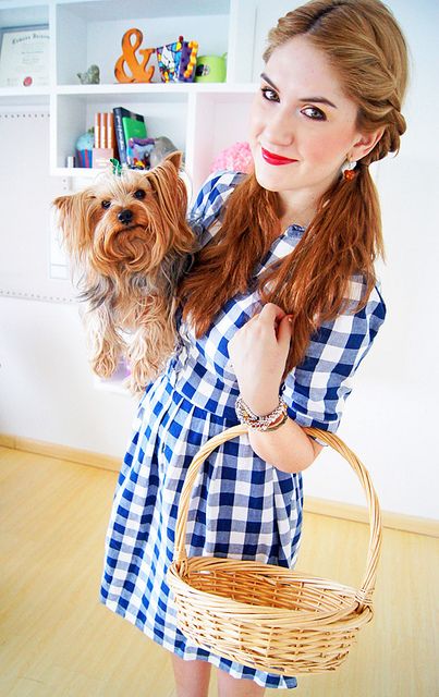 Tranfórmate en Dorothy con cualquier vestido y canasta que tengas a la mano. No lleves a tu perro, mejor usa uno de peluche.