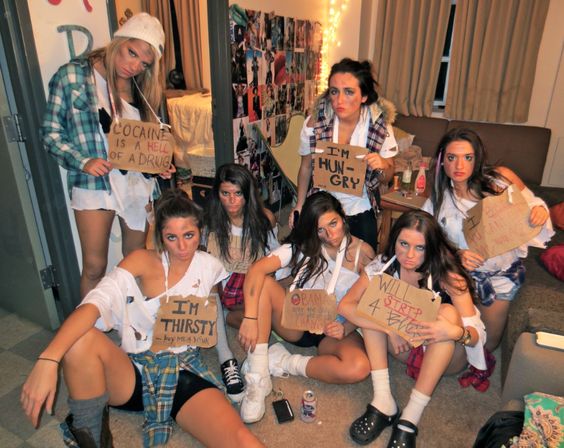 Ponte los trapitos que menos usas, ensúcialos un poco con sombras negras, hazte un letrero y transfórmate en una vagabunda.