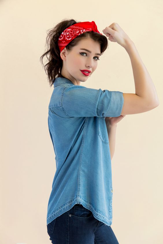 Tu típica playera de mezclilla será tu disfraz. Sólo añade un paliacate a tu cabello y listo ¡Girl Power!