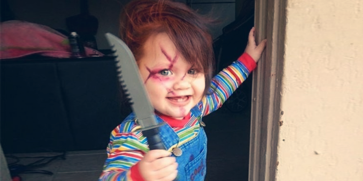 ¿Qué mejor Chucky que un bebé? Ellos tienen el tamaño perfecto para lucir realmente escalofriantes.