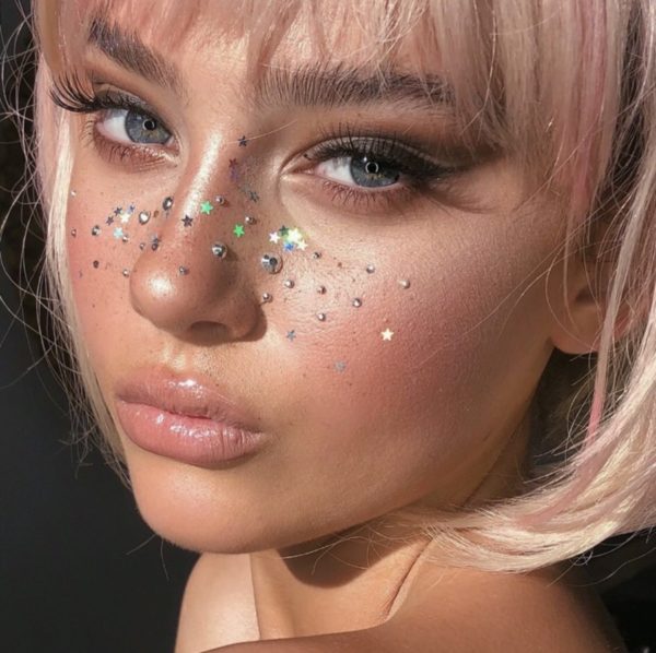 Enamórate del glitter que compraste hace mucho y nunca usaste, puedes usarlo como labial, highlighter o hasta sombras tipo glossy.