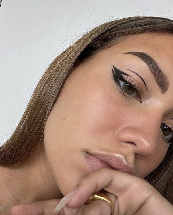 Delineado grunge, que consiste en agregar elementos a la punta de tu delineado, como flamas, figuras, líneas, etc.