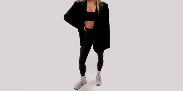 Look de gimnasio que cambia por completo con sólo añadir un blazer.