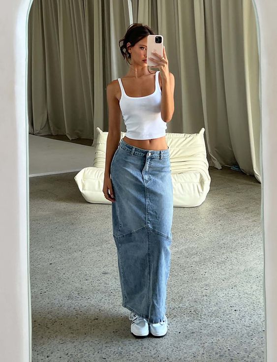 Yo le tenía un miedo loco a las faldas largas de mezclilla porque por más que intentaba usarlas bien, terminaba viéndome como monja o como salida de una secta religiosa. Y sé que a muchas de ustedes les pasa lo mismo, por eso hoy les traigo 10 formas infalibles de usarlas como se debe y de la forma más chic y sexy posible.