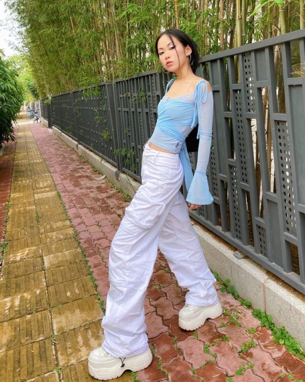 Los baggy pants suelen ser muy amplios y además largos, cosa que a las chaparritas nos causa mucho problema porque nos acorta la figura si no los usamos bien, y andamos arrastrando todo si no los mandamos a cortar o si no usamos el calzado adecuado.
