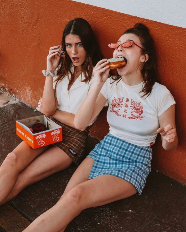 Usen su break para sacarse una foto comiendo, así tendrán una foto original y con una pose súper natural, porque ambas aman comer.