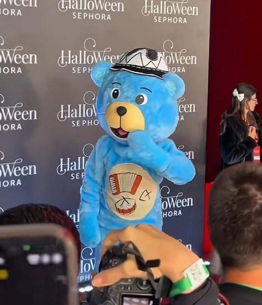 Nada más escalofriante que un oso gigante azul que sonríe como si supiera tus peores secretos. Inquietante, adorable y ligeramente perturbador: el disfraz que te haría cruzar la calle si lo ves de noche.