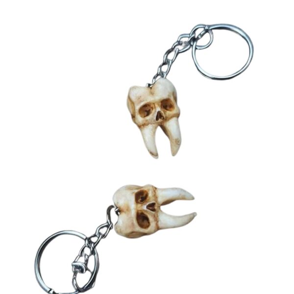 Llaveros en forma de muela con calavera incluida, porque claro, ¿por qué no llevar tu peor pesadilla dental como accesorio? Perfectos si quieres algo original, raro y con vibra de “colecciono huesos emocionales”.