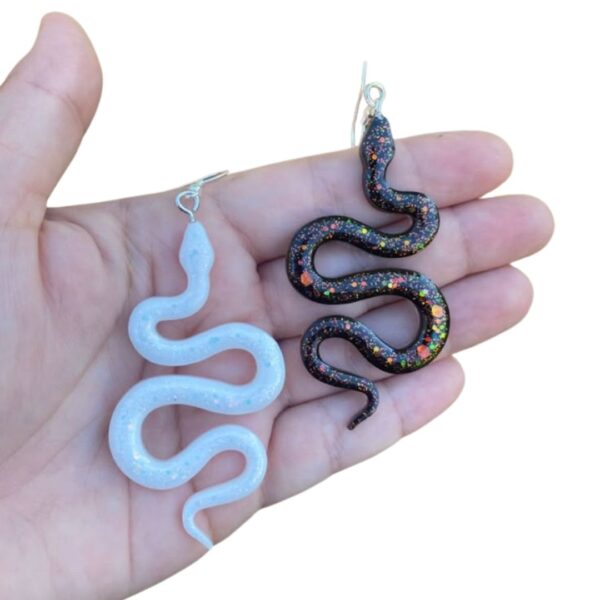 Estas serpientes no se arrastran, se deslizan directo a tu look. Hechas con silicón o porcelana fría, puedes pintarlas con glitter o dejar una blanca y una negra para representar tus dos personalidades: la que trabaja y la que quiere destruir todo.