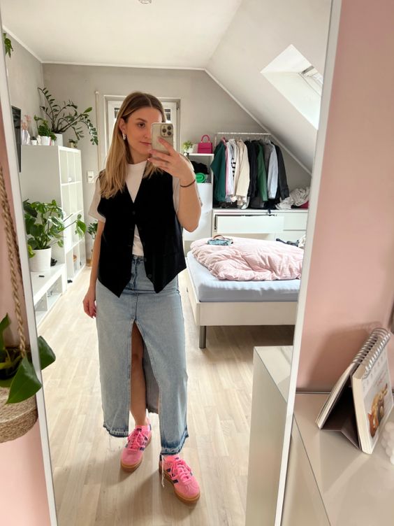 Con esa falda larga de mezclilla que tienes en el closet.