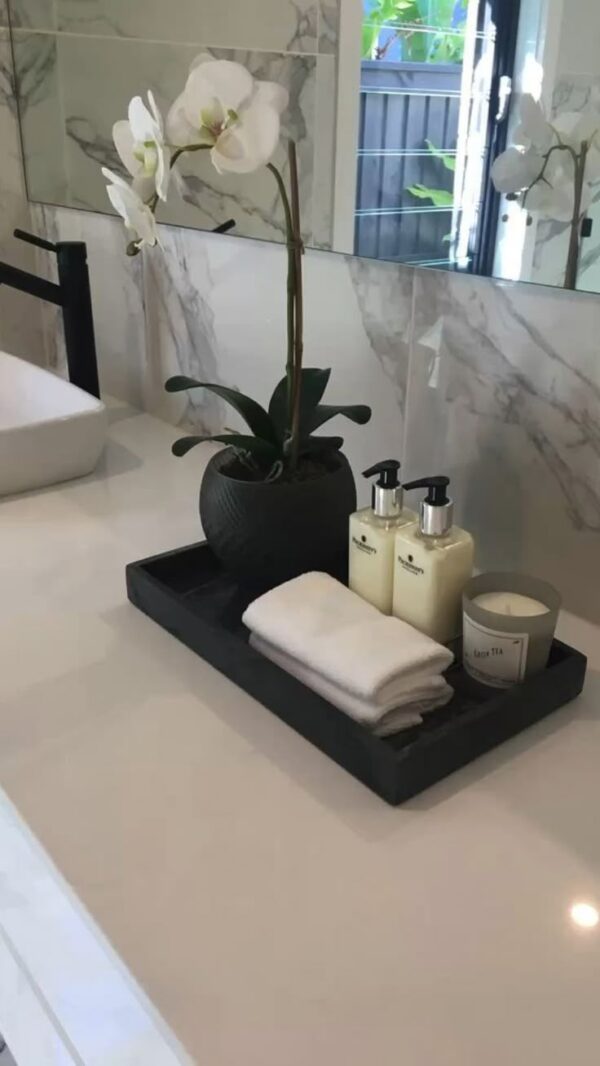 No hay baño feo, solo baños sin ganas. Una bandeja con plantita, difusor y toallitas es el toque Pinterest que tu excusado estaba pidiendo a gritos.