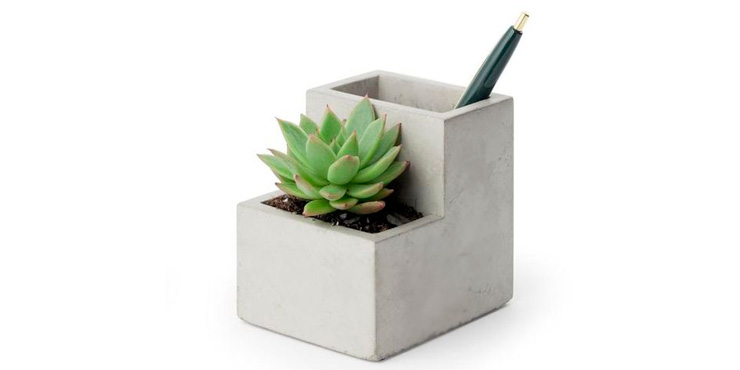 O una base que contenga la maceta y un sitio donde poner todos tus bolígrafos.