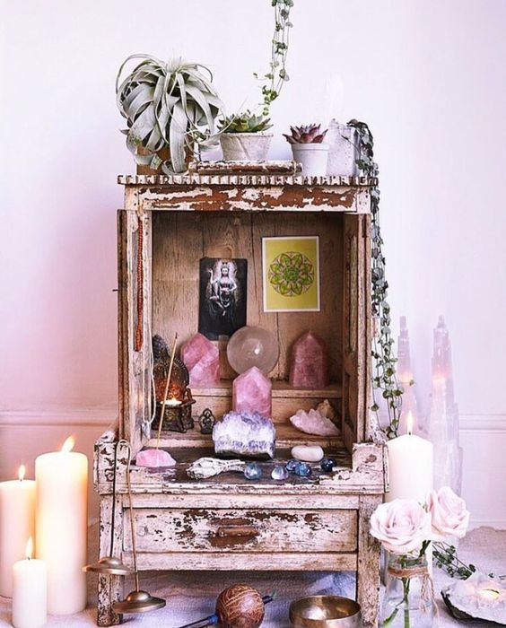 Puedes reciclar muebles para crear tu altar.